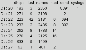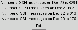 label .l_$day -text "Number of SSH messages on Dec $day is $ssh_count"