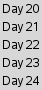 foreach day {20 21 22 23 24} {