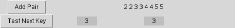 After clicking Add Pair 4 times, Test Replace twice, and Test Delete once, it should look like this: