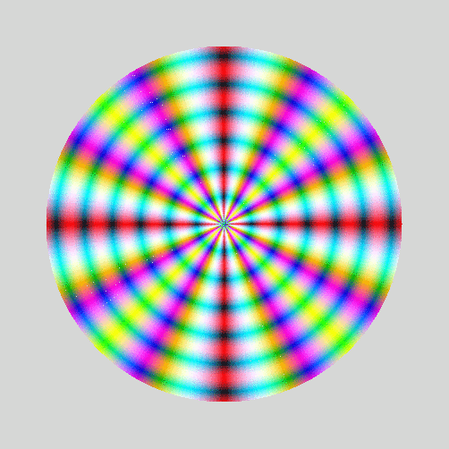 Red = absolute value (255*sin(radius/10.0))