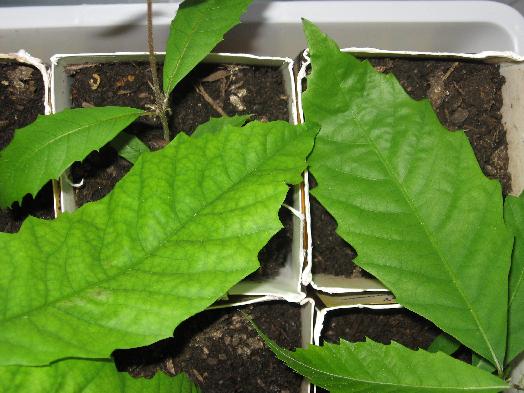 The leaves on the first of the seedlings to sprout look quite different from the other seedlings.