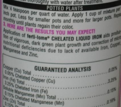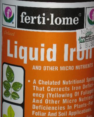 On Mar 14 I visited a larger garden store in Ann Arbor and picked up a bottle of Ferti-lome brand iron supplement.