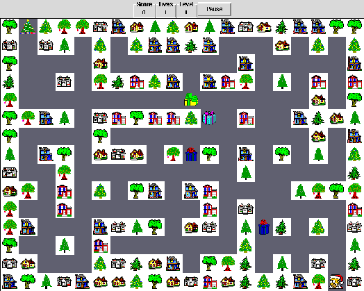 The goal is to find as many presents and get them to the exit tree before the various kids find them. To do this, you need to solve the simple maze, and be able to hold down an arrow key.