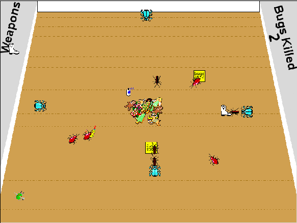 The goal is to protect Santa's stash of candy from the legions of invading bugs. The elves will provide cans of bugspray, flypaper, stomping boots and sweeping brooms. You have to figure out where they'll do the most good.